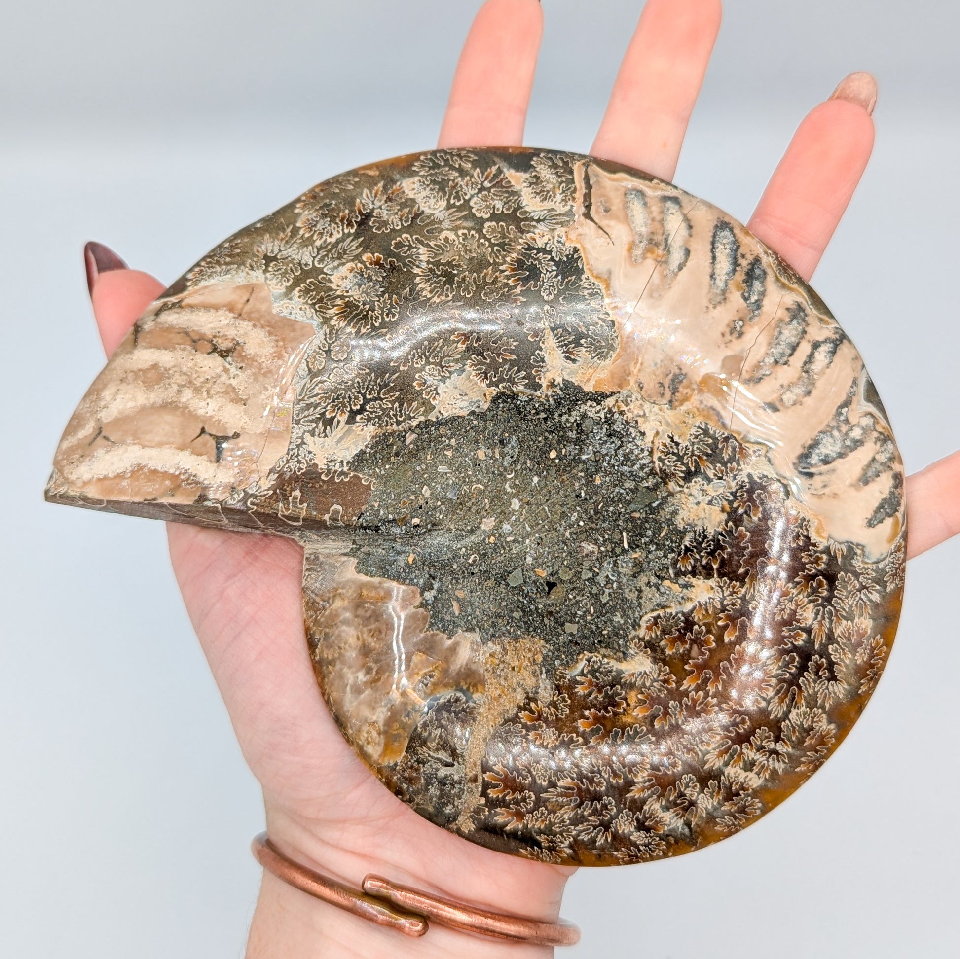 Ammonites were once a highly successful, living creature, on this Earth when it was VERY different to how it is now. It is one of the longest surviving species to ever have existed. In that way, ammonites are symbols of change, longevity, and progressive existence. Despite the world being entirely different to how it is now, Ammonites show how to survive predators. In the current world, we give our energy to people every day, and much of the time can be abused. Having ammonite with you, can aid in protecting yourself from energy predators.