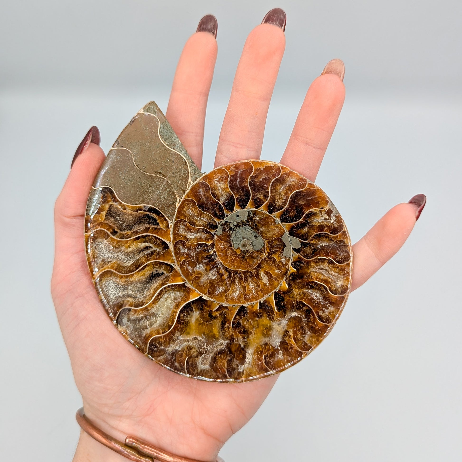 Ammonites were once a highly successful, living creature, on this Earth when it was VERY different to how it is now. It is one of the longest surviving species to ever have existed. In that way, ammonites are symbols of change, longevity, and progressive existence. Despite the world being entirely different to how it is now, Ammonites show how to survive predators. In the current world, we give our energy to people every day, and much of the time can be abused. Having ammonite with you, can aid in protecting yourself from energy predators.
