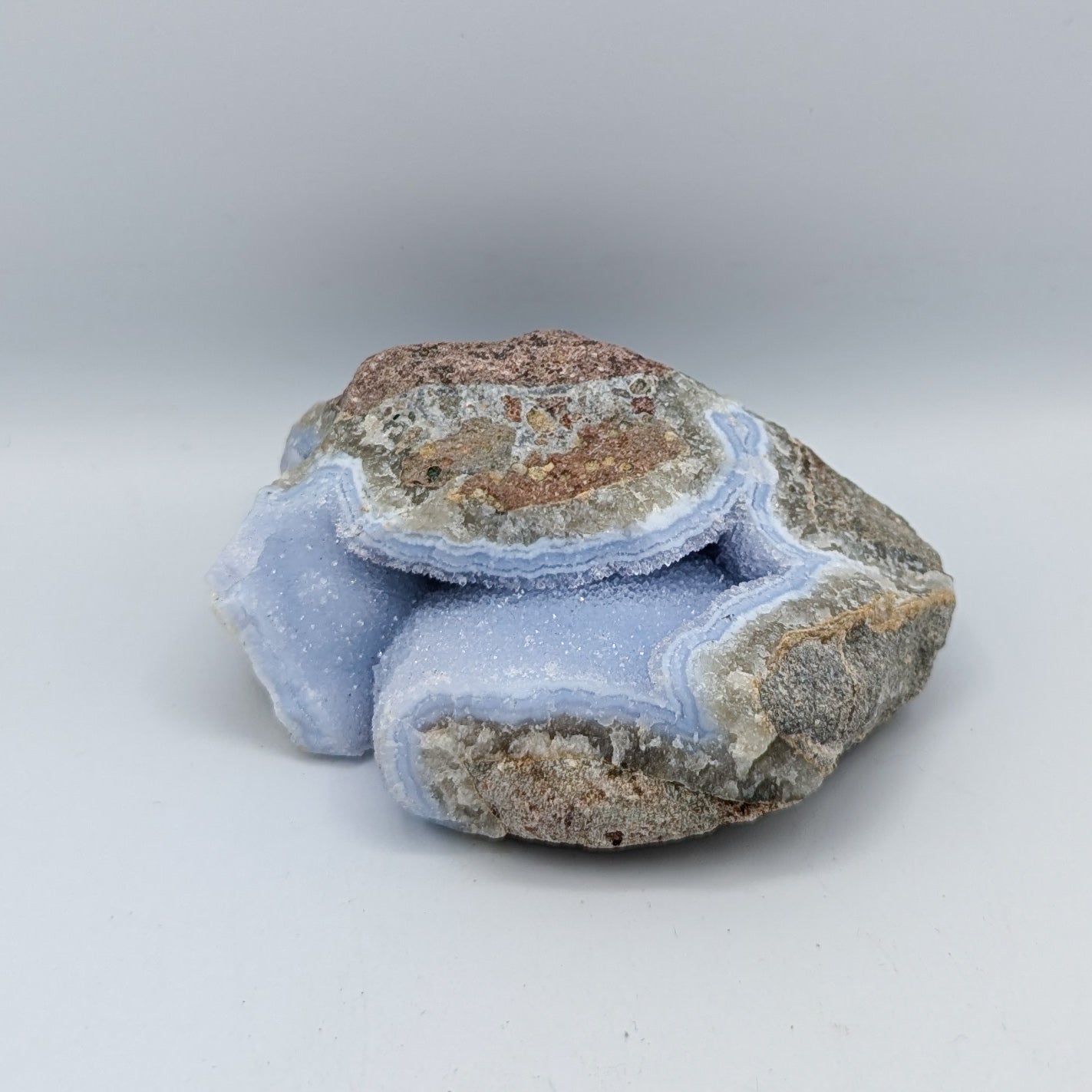 Blue Lace Agate is a beautiful variation of the Agate family. Its energy is slow and steady, working over time to change habits and filter in its positive vibrations. Blue Lace Agate is deeply rooted in the Throat Chakra, aiding in opening one's ability to speak their highest truth. It is a stone of gentle transformation, emphasizing the importance of clear and steady communication. It is the perfect companion for those working with affirmations. It amplifies the words we speak, and connects deeply with the ripples under the surface that perhaps are holding us back. As an agate, it may not be an overnight transition, but time and purposely spoken words are key to stepping into the next level of truth within.