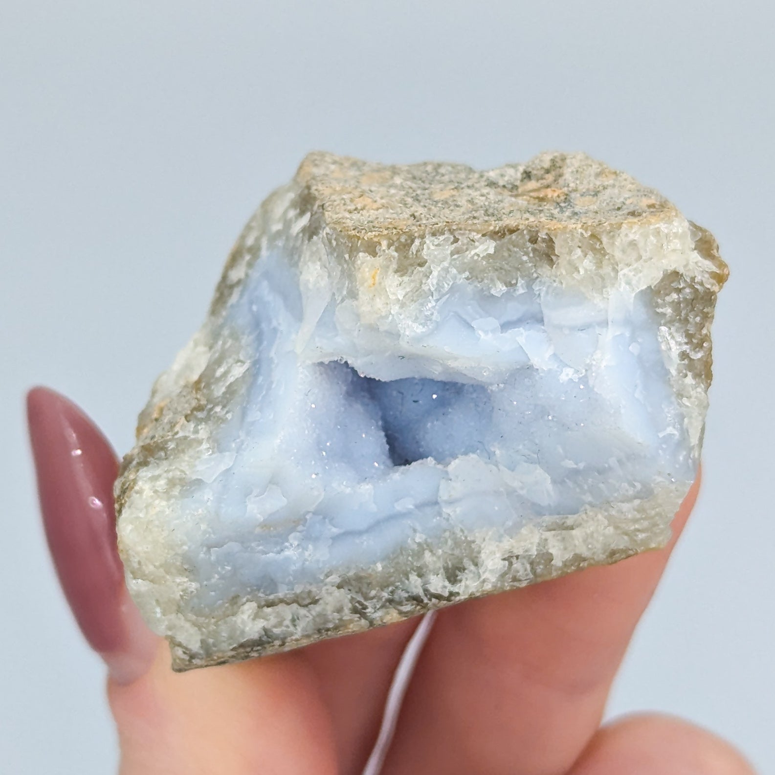 Blue Lace Agate is a beautiful variation of the Agate family. Its energy is slow and steady, working over time to change habits and filter in its positive vibrations. Blue Lace Agate is deeply rooted in the Throat Chakra, aiding in opening one's ability to speak their highest truth. It is a stone of gentle transformation, emphasizing the importance of clear and steady communication. It is the perfect companion for those working with affirmations. It amplifies the words we speak, and connects deeply with the ripples under the surface that perhaps are holding us back. As an agate, it may not be an overnight transition, but time and purposely spoken words are key to stepping into the next level of truth within.