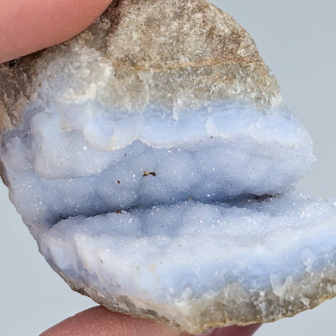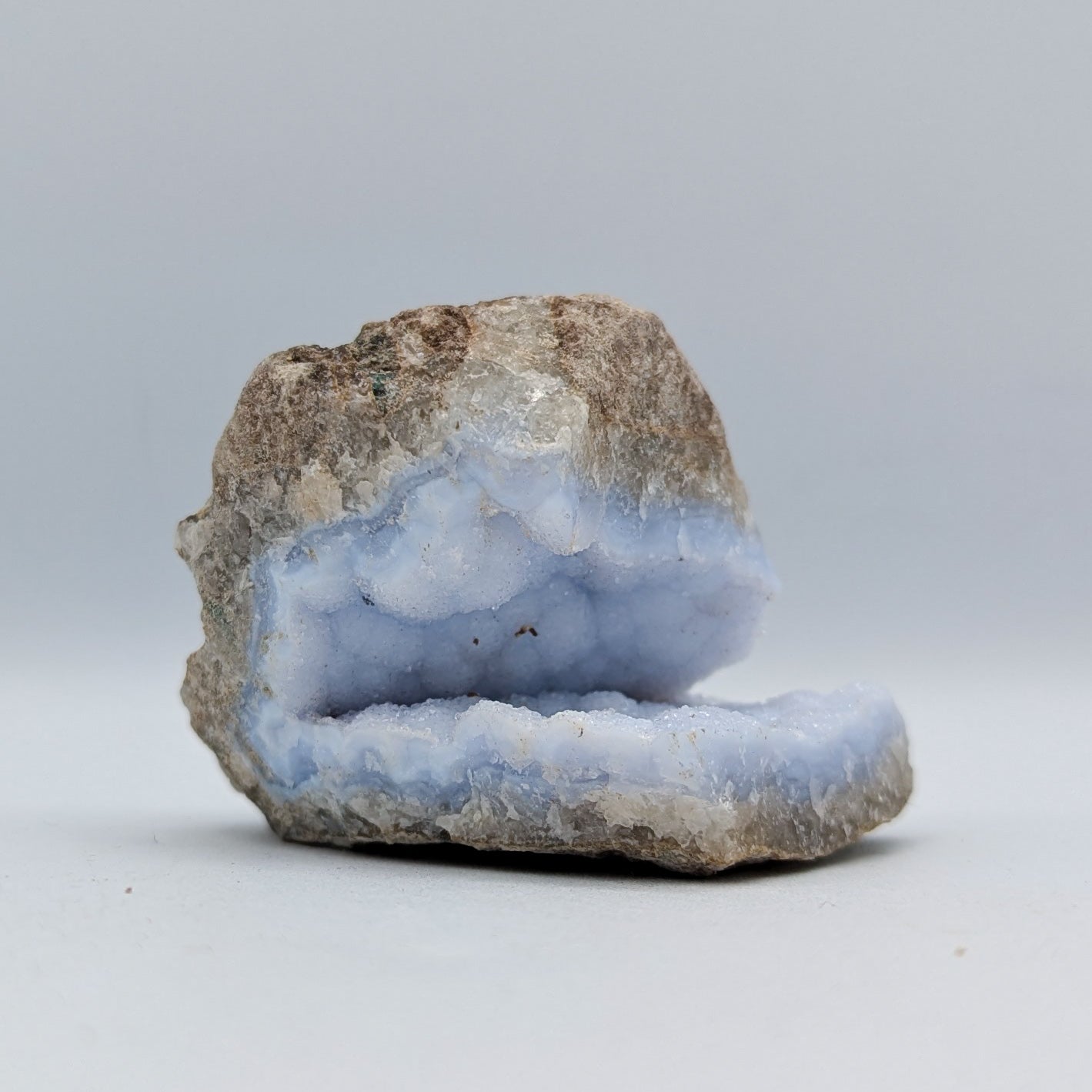 Blue Lace Agate is a beautiful variation of the Agate family. Its energy is slow and steady, working over time to change habits and filter in its positive vibrations. Blue Lace Agate is deeply rooted in the Throat Chakra, aiding in opening one's ability to speak their highest truth. It is a stone of gentle transformation, emphasizing the importance of clear and steady communication. It is the perfect companion for those working with affirmations. It amplifies the words we speak, and connects deeply with the ripples under the surface that perhaps are holding us back. As an agate, it may not be an overnight transition, but time and purposely spoken words are key to stepping into the next level of truth within.