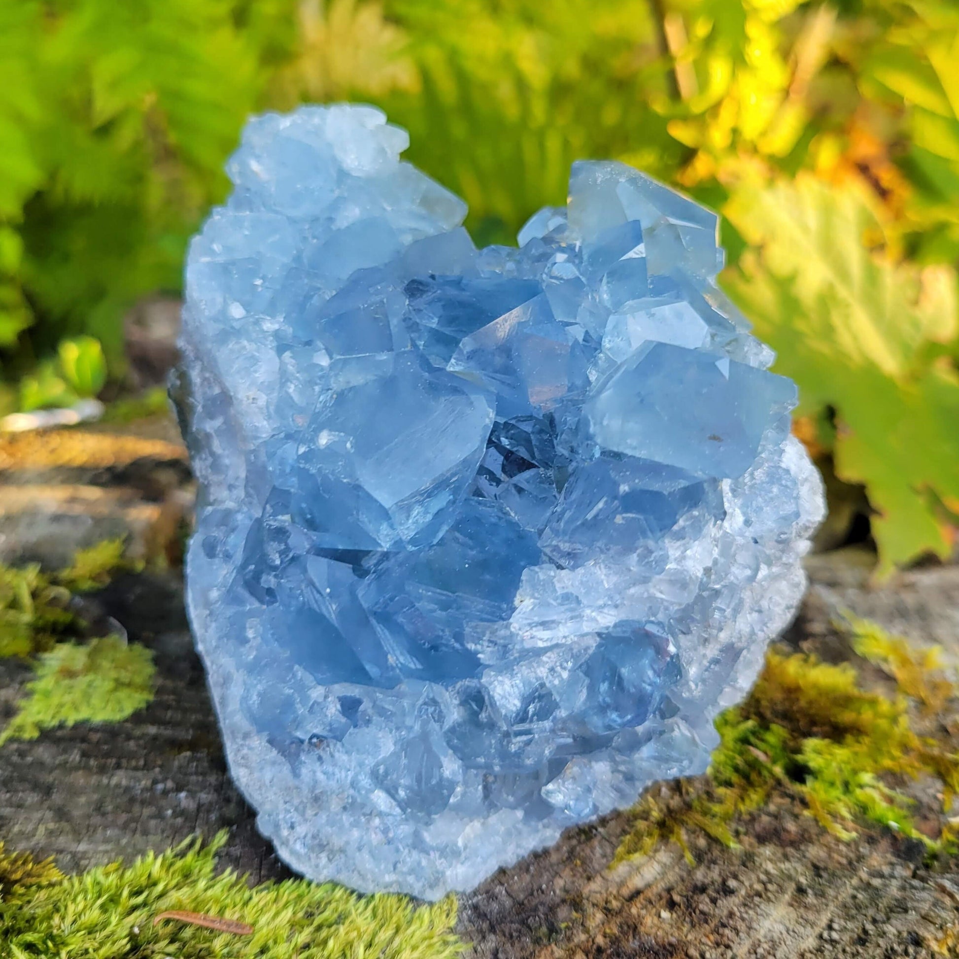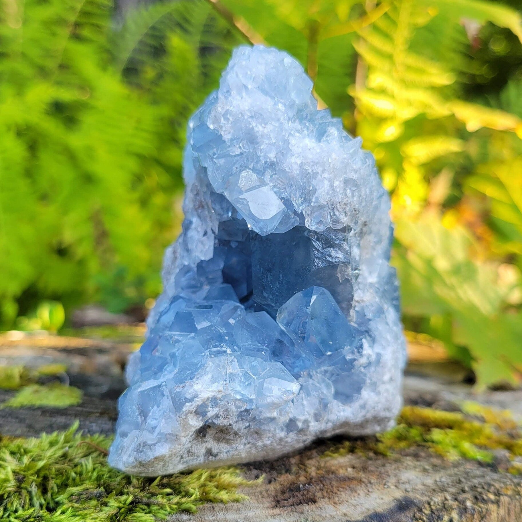 This crystals energy is felt from the moment you hold it. The tranquil blue hues send calming energy throughout the body, and soothes the emotions and aura. Its name comes from the word for "Celestial" and heightens our connection with the celestial realms. That can be with our guardian angels, our psychic abilities, and even the messages coming through our daily life to guide us on our journey. Placing this crystal next to the bed will help with lucid dreams and seeing the meaning behind the images. Placing this crystal in the office will help calm the mind and soul in times of stress or overwhelming emotions.