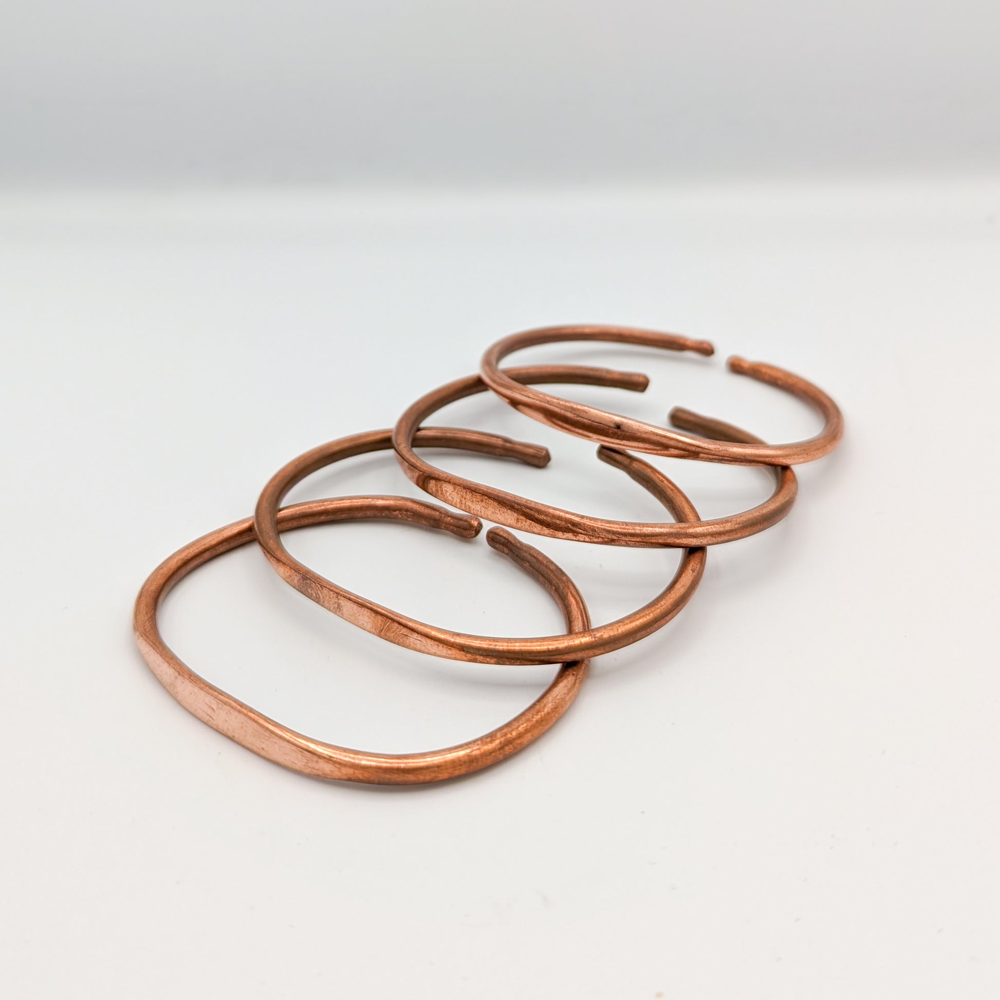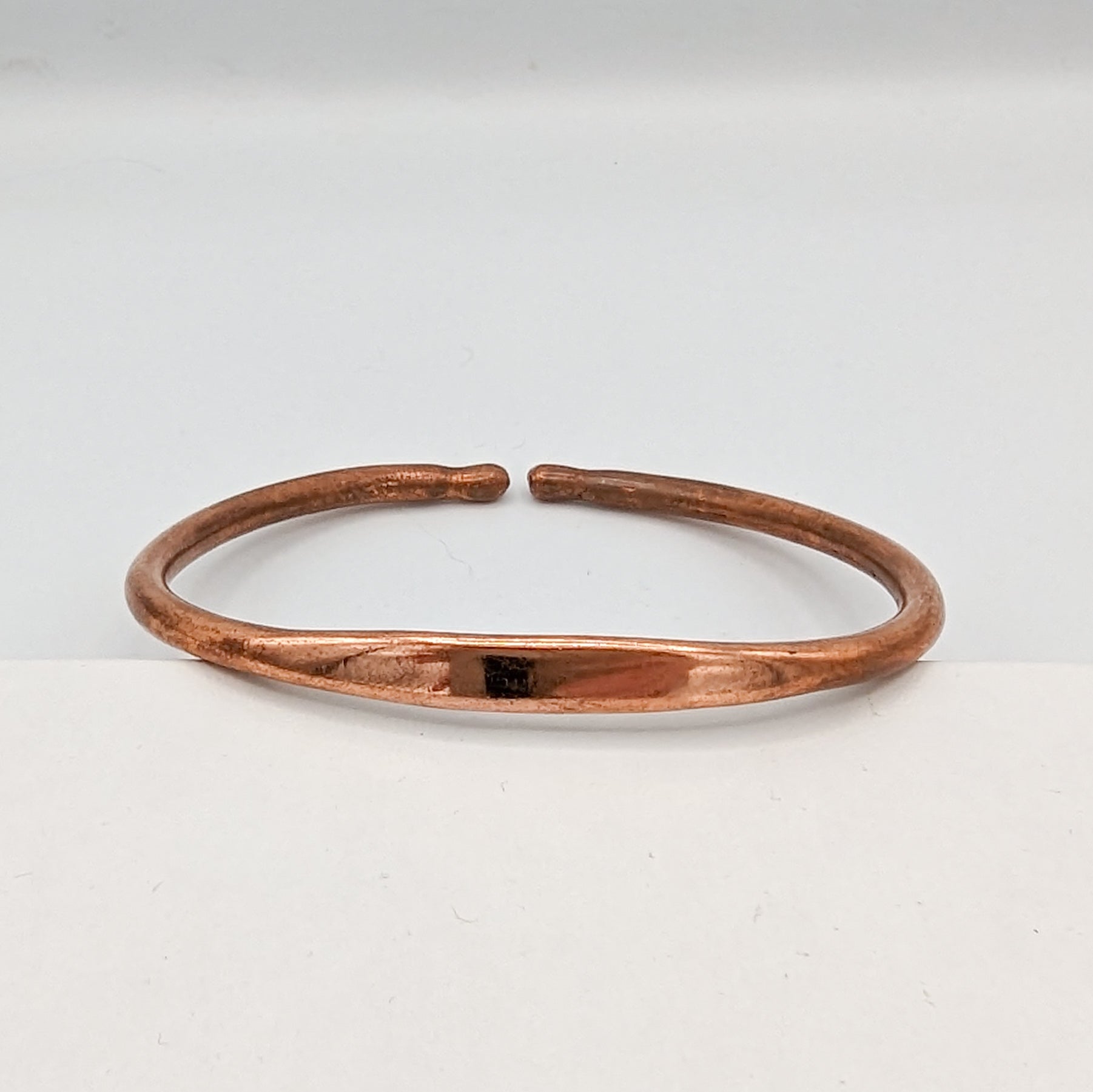 These bracelets are hand hammered and made in workshops by local people in Lubumbashi. Through this, each is unique, with slight different thicknesses and sizes.
