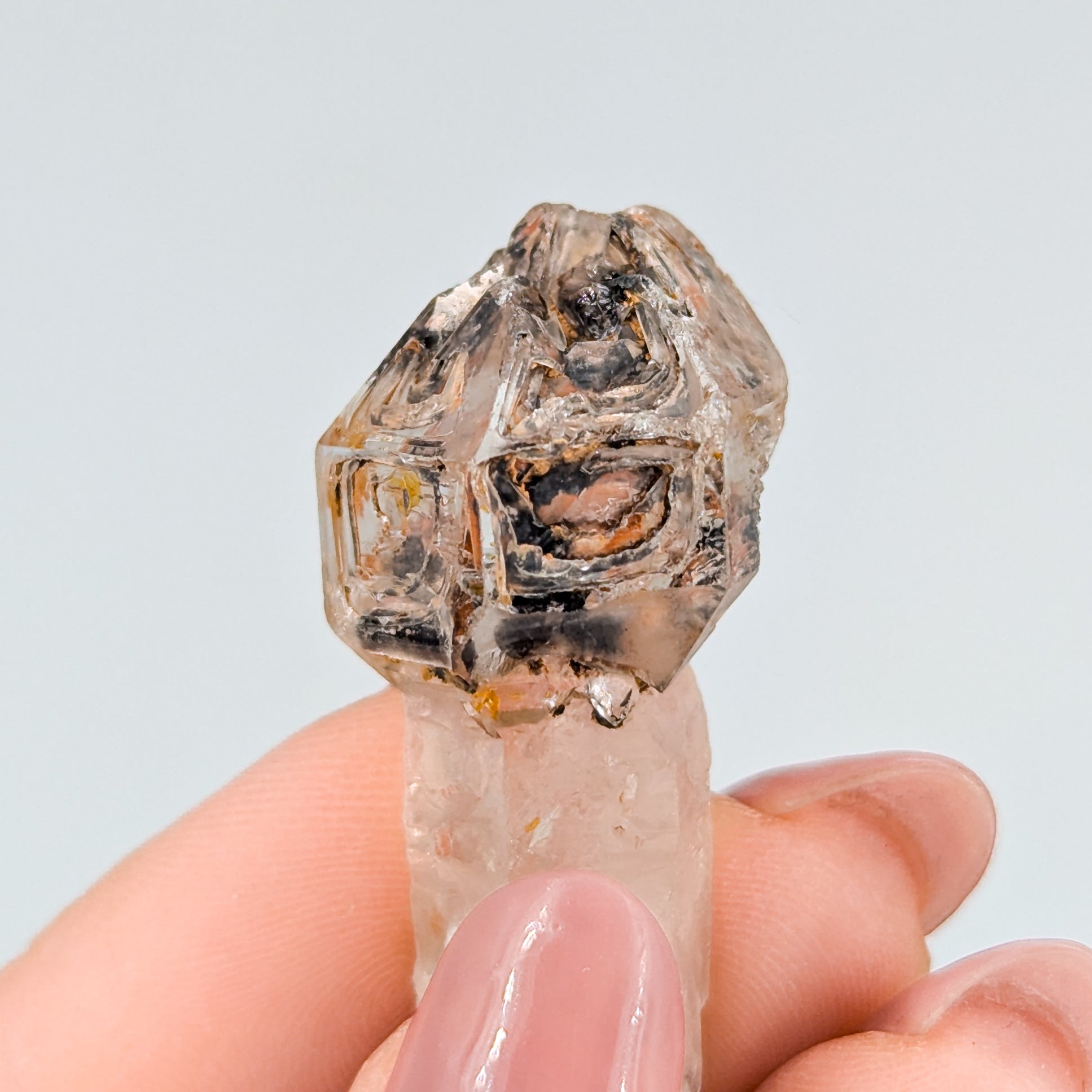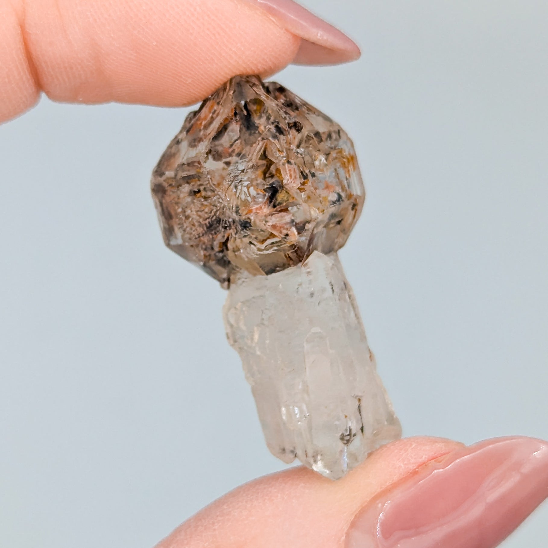 The energy of these crystals is said to be incredibly intense. Similar to that of Herkimer Diamond energy, connecting with the highest self, yet deeply grounding. The inclusion of the Petroleum, decayed organic matter, helps to centre ourselves, thoughts and energies. It is an incredible piece to manifest with as it keeps us rooted in the present moment, whilst allowing us to connect with the higher dimension. Being a Clear Quartz base, it is still a wonderful healer of mind and body.