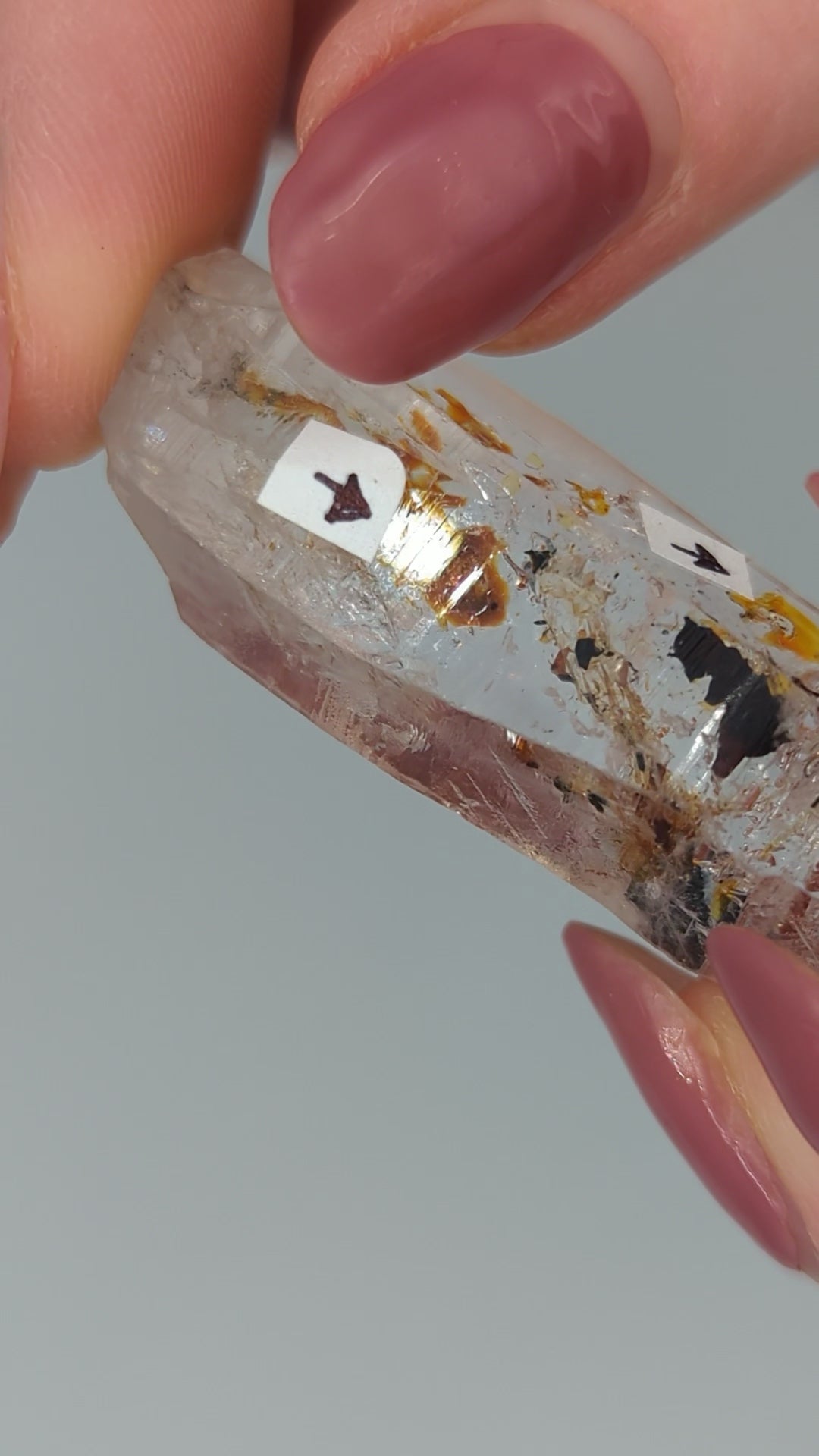 The energy of these crystals is said to be incredibly intense. Similar to that of Herkimer Diamond energy, connecting with the highest self, yet deeply grounding. The inclusion of the Petroleum, decayed organic matter, helps to centre ourselves, thoughts and energies. It is an incredible piece to manifest with as it keeps us rooted in the present moment, whilst allowing us to connect with the higher dimension. Being a Clear Quartz base, it is still a wonderful healer of mind and body.