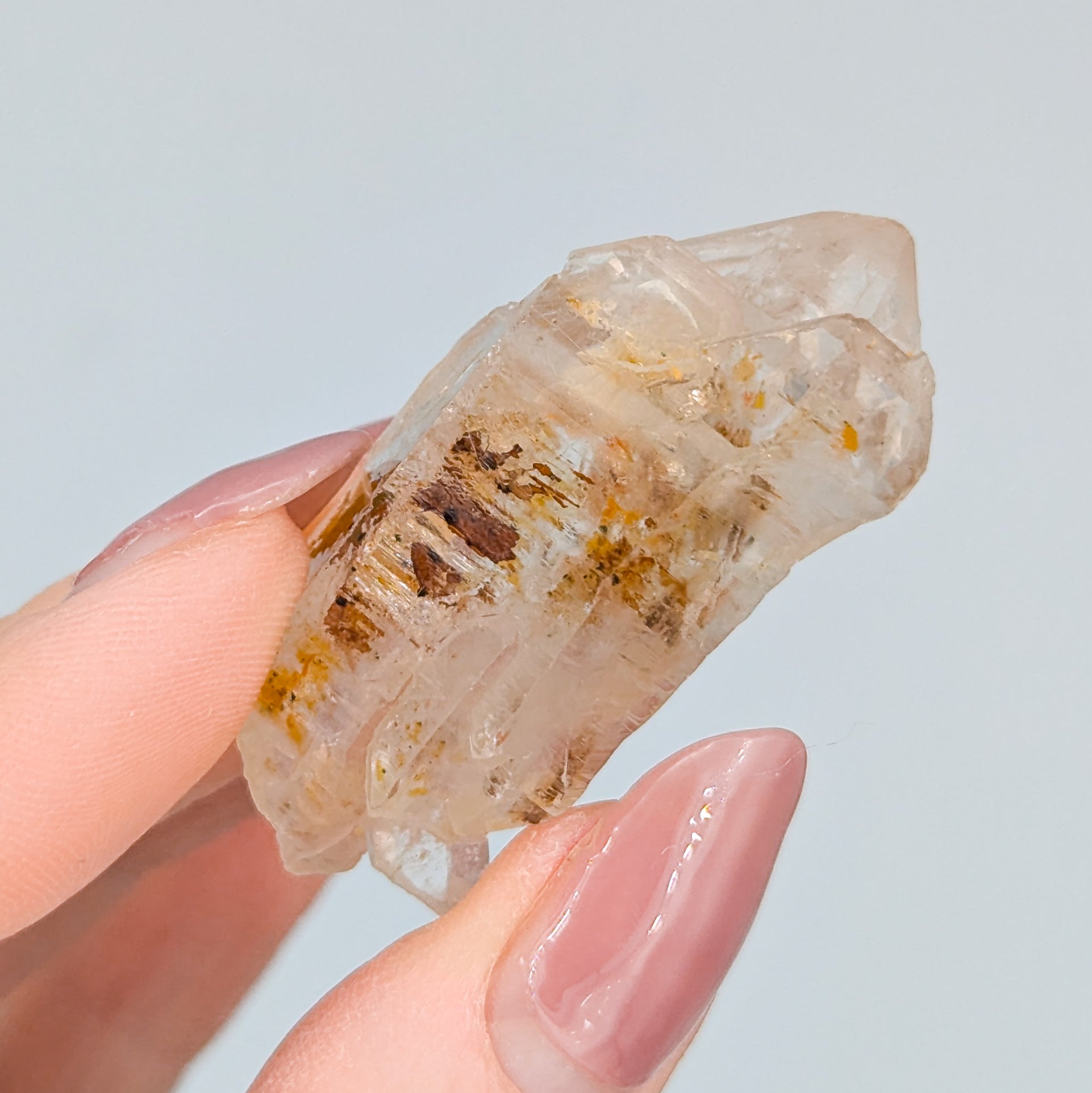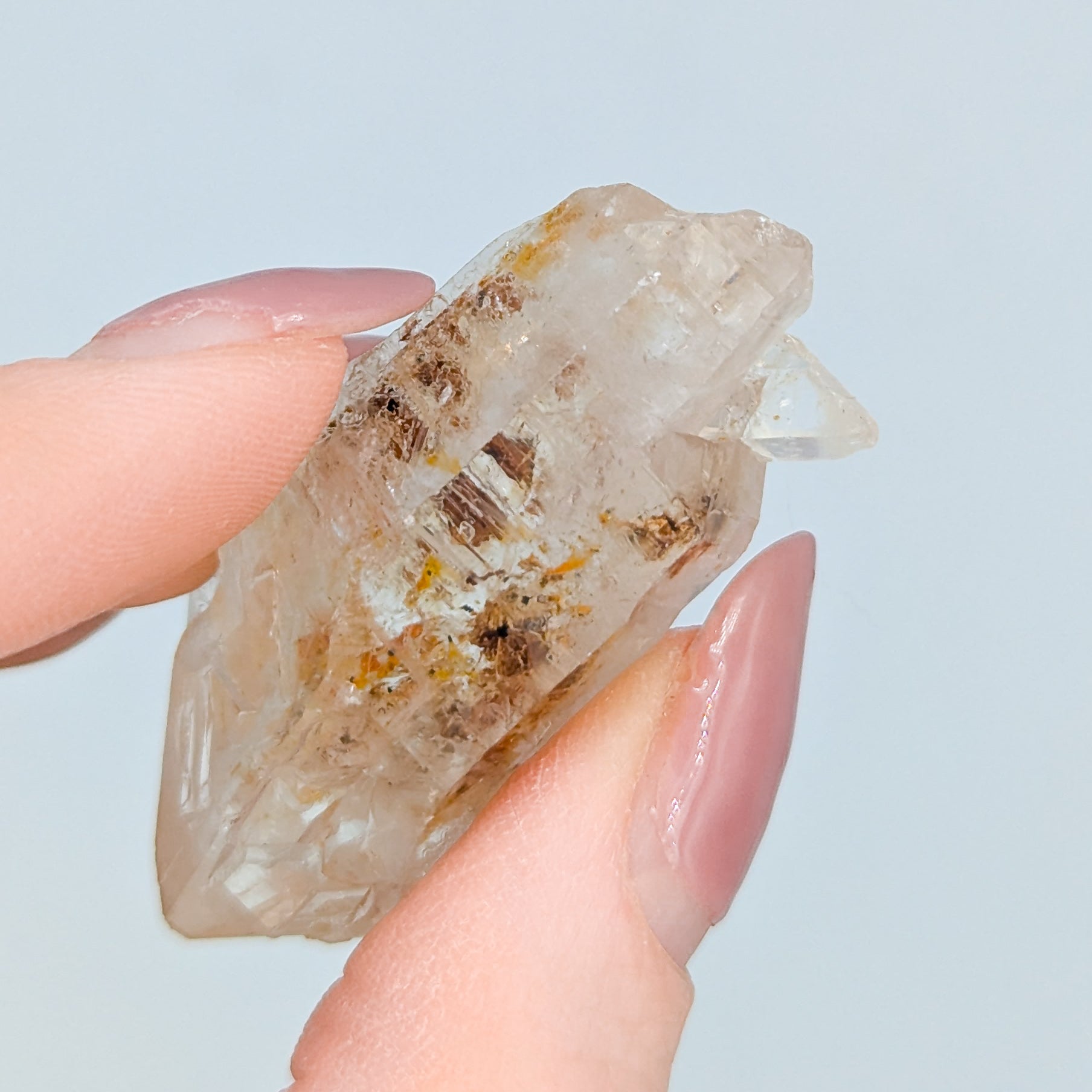The energy of these crystals is said to be incredibly intense. Similar to that of Herkimer Diamond energy, connecting with the highest self, yet deeply grounding. The inclusion of the Petroleum, decayed organic matter, helps to centre ourselves, thoughts and energies. It is an incredible piece to manifest with as it keeps us rooted in the present moment, whilst allowing us to connect with the higher dimension. Being a Clear Quartz base, it is still a wonderful healer of mind and body.