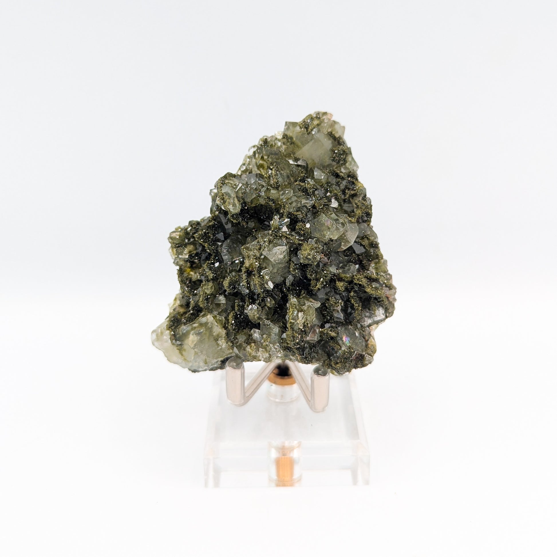 "Forest Quartz" has become the name given to this visual beauty of a specimen, the combination of Epidote growing on Quartz clusters. This incredible harmony is only found in one locality in the world, making it that much more desirable, beyond the physical impression of it. These pieces have a wonderful mixture of mature Epidote crystals (deeper green colour and larger crystalline structure), and younger Epidote crystals (brighter green and very subtle crystalline structure). Looking at these pieces will transport you to another world of deep green forests, and crystal clear waters. Stunning.