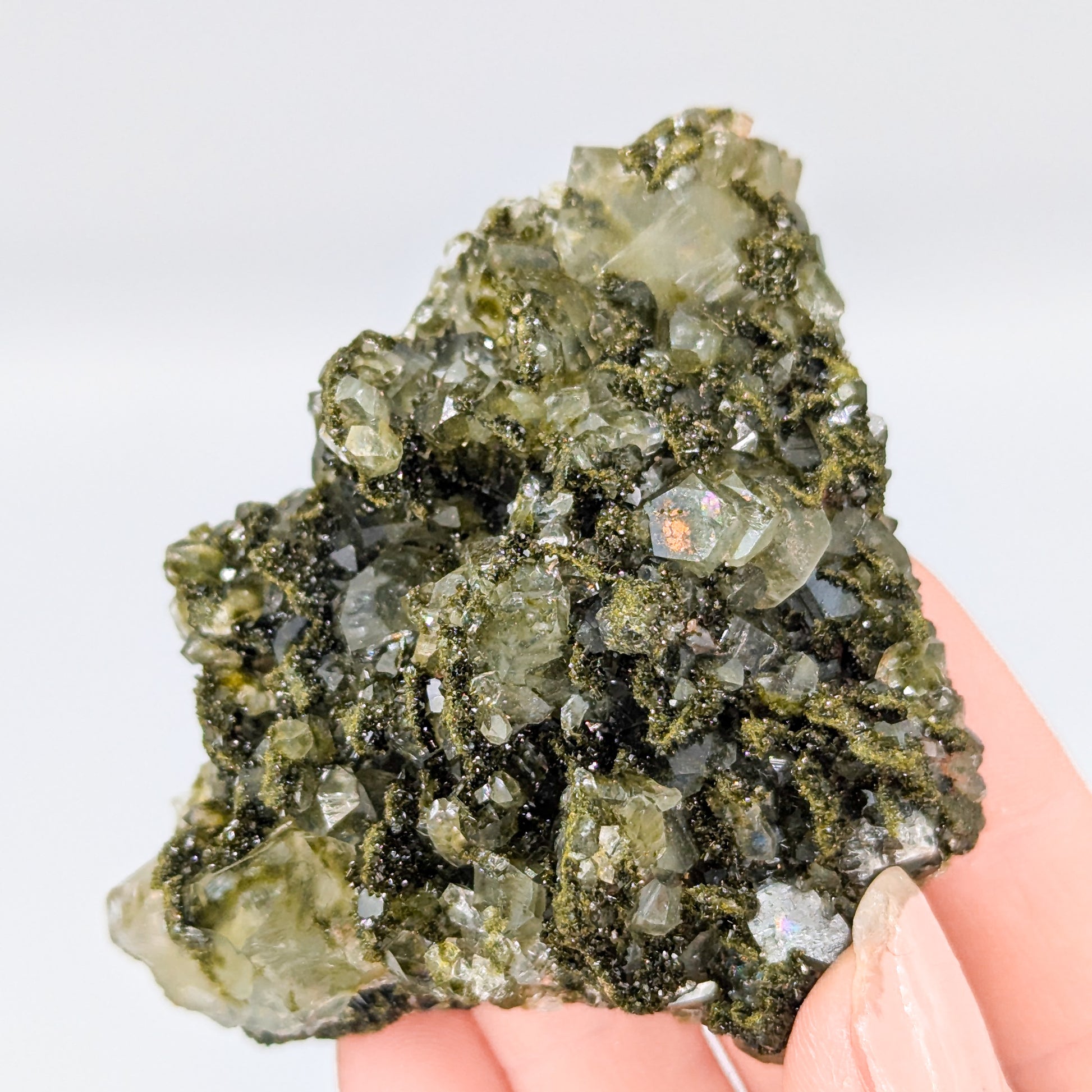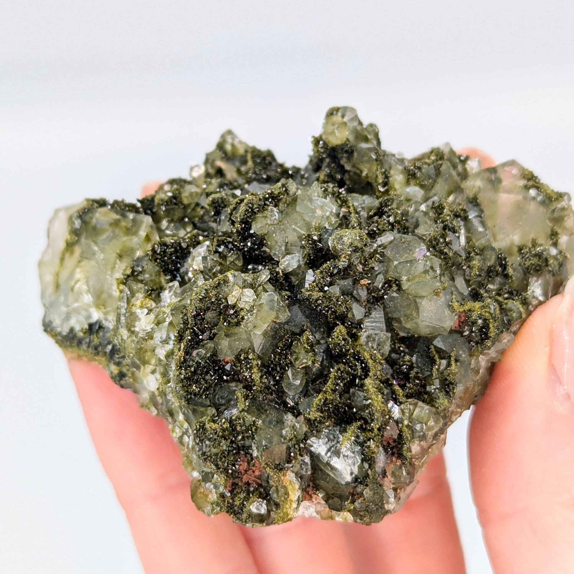 Forest Quartz is a stunning sight to behold, and the energy that radiates from these specimens truly takes them to another level. Epidote radiates an energy of growth. It helps to draw us out of negative slumps, and inspires us to take on the world. It is great for opening the heart to receive love and abundance from the universe. However, it is worth remembering the universe gives back what it receives. If you are living with an open heart, generous and loving, then the universe will send it back tenfold... and the opposite too. When paired with Clear Quartz, the master healer, the energy of the Epidote is amplified intensely. With the Quartz ability to flush out negative energy and bring forth clarity, this harmony is truly the best for bringing positive, loving, abundant energy into one's life.