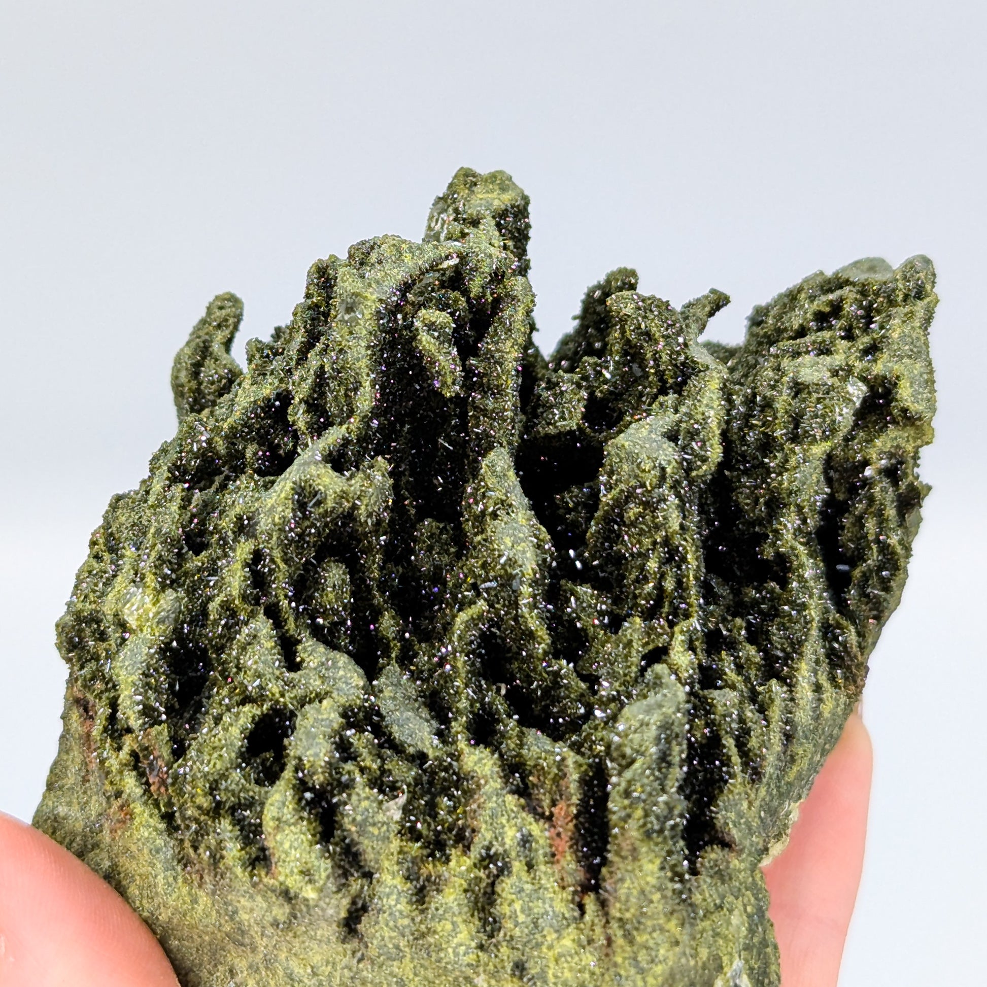 Forest Quartz is a stunning sight to behold, and the energy that radiates from these specimens truly takes them to another level. Epidote radiates an energy of growth. It helps to draw us out of negative slumps, and inspires us to take on the world. It is great for opening the heart to receive love and abundance from the universe. However, it is worth remembering the universe gives back what it receives. If you are living with an open heart, generous and loving, then the universe will send it back tenfold... and the opposite too. When paired with Clear Quartz, the master healer, the energy of the Epidote is amplified intensely. With the Quartz ability to flush out negative energy and bring forth clarity, this harmony is truly the best for bringing positive, loving, abundant energy into one's life.