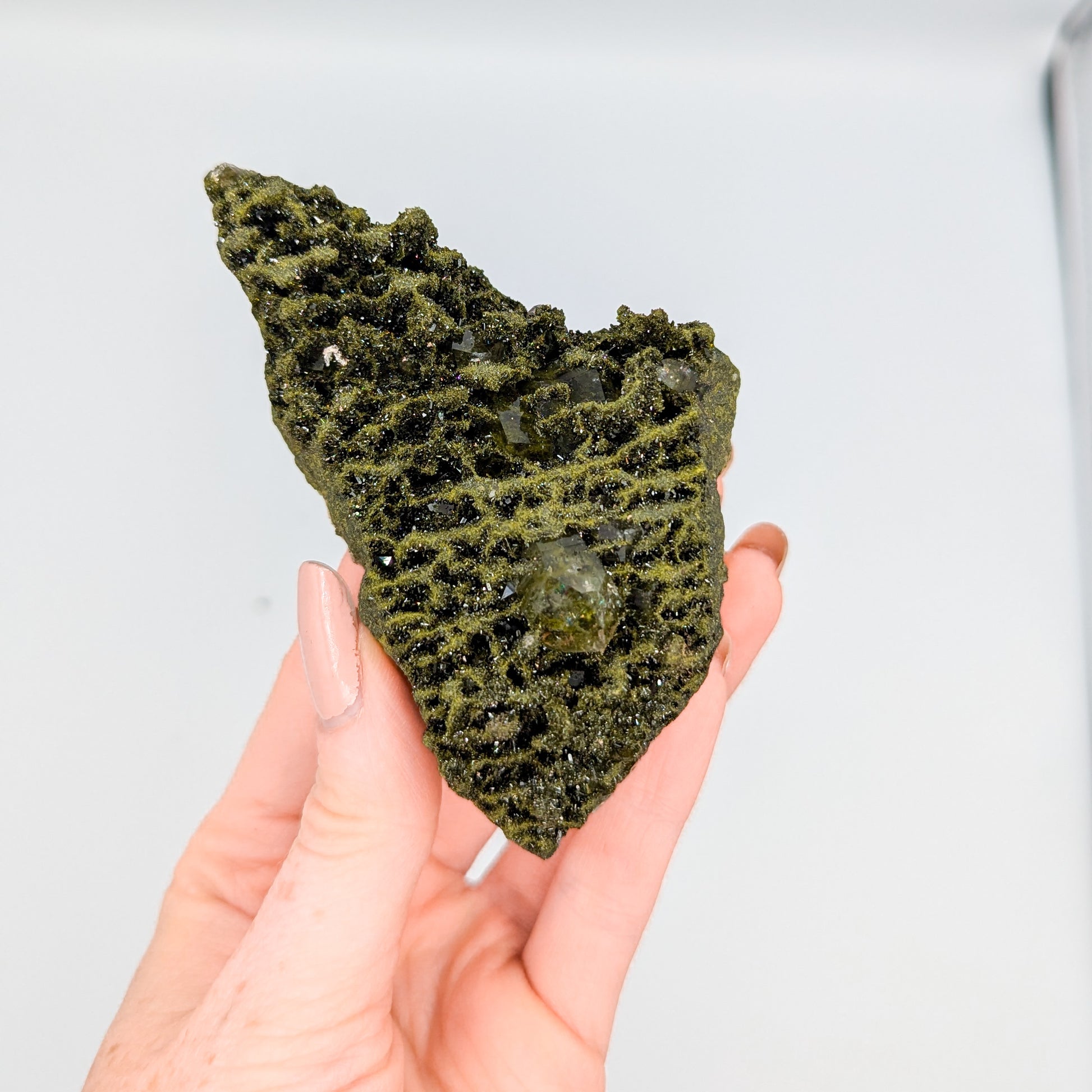 Forest Quartz is a stunning sight to behold, and the energy that radiates from these specimens truly takes them to another level. Epidote radiates an energy of growth. It helps to draw us out of negative slumps, and inspires us to take on the world. It is great for opening the heart to receive love and abundance from the universe. However, it is worth remembering the universe gives back what it receives. If you are living with an open heart, generous and loving, then the universe will send it back tenfold... and the opposite too. When paired with Clear Quartz, the master healer, the energy of the Epidote is amplified intensely. With the Quartz ability to flush out negative energy and bring forth clarity, this harmony is truly the best for bringing positive, loving, abundant energy into one's life.