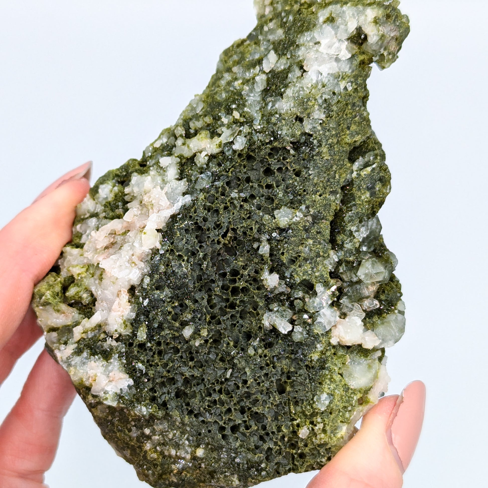 Forest Quartz is a stunning sight to behold, and the energy that radiates from these specimens truly takes them to another level. Epidote radiates an energy of growth. It helps to draw us out of negative slumps, and inspires us to take on the world. It is great for opening the heart to receive love and abundance from the universe. However, it is worth remembering the universe gives back what it receives. If you are living with an open heart, generous and loving, then the universe will send it back tenfold... and the opposite too. When paired with Clear Quartz, the master healer, the energy of the Epidote is amplified intensely. With the Quartz ability to flush out negative energy and bring forth clarity, this harmony is truly the best for bringing positive, loving, abundant energy into one's life.