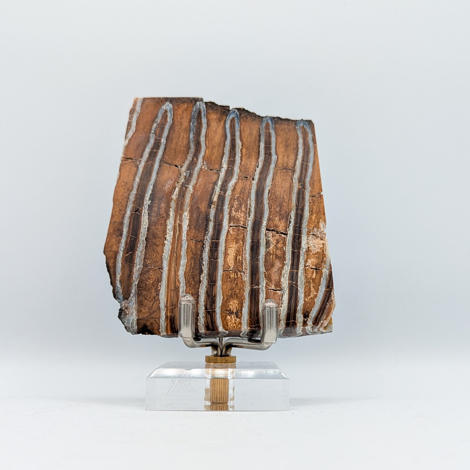 The last known mammoths existed 4,000 years ago, during a period the Earth had a natural Ice Age. There is debate as to which made them extinct but they were the last known huge mammal to roam the planet before modern animals. The mineralization process during fossilization has caused bands of the fossil to become fluorescent.