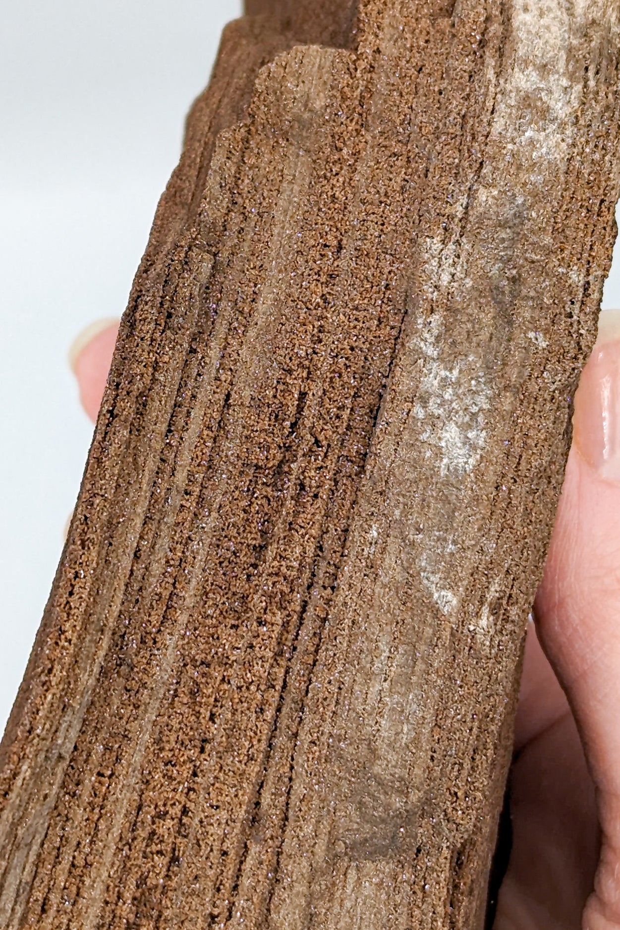 This piece is truly a sight to behold. The sparkle is like nothing I have ever seen before, due to the micro Quartz crystalline layer, naturally forming on the surface. This is a form of petrified wood in which a mineral took over the biological matter of the tree, around 200 million years ago. They were mined in Germany in the 1980s and the mine is already closed, making these pieces SUPER RARE.