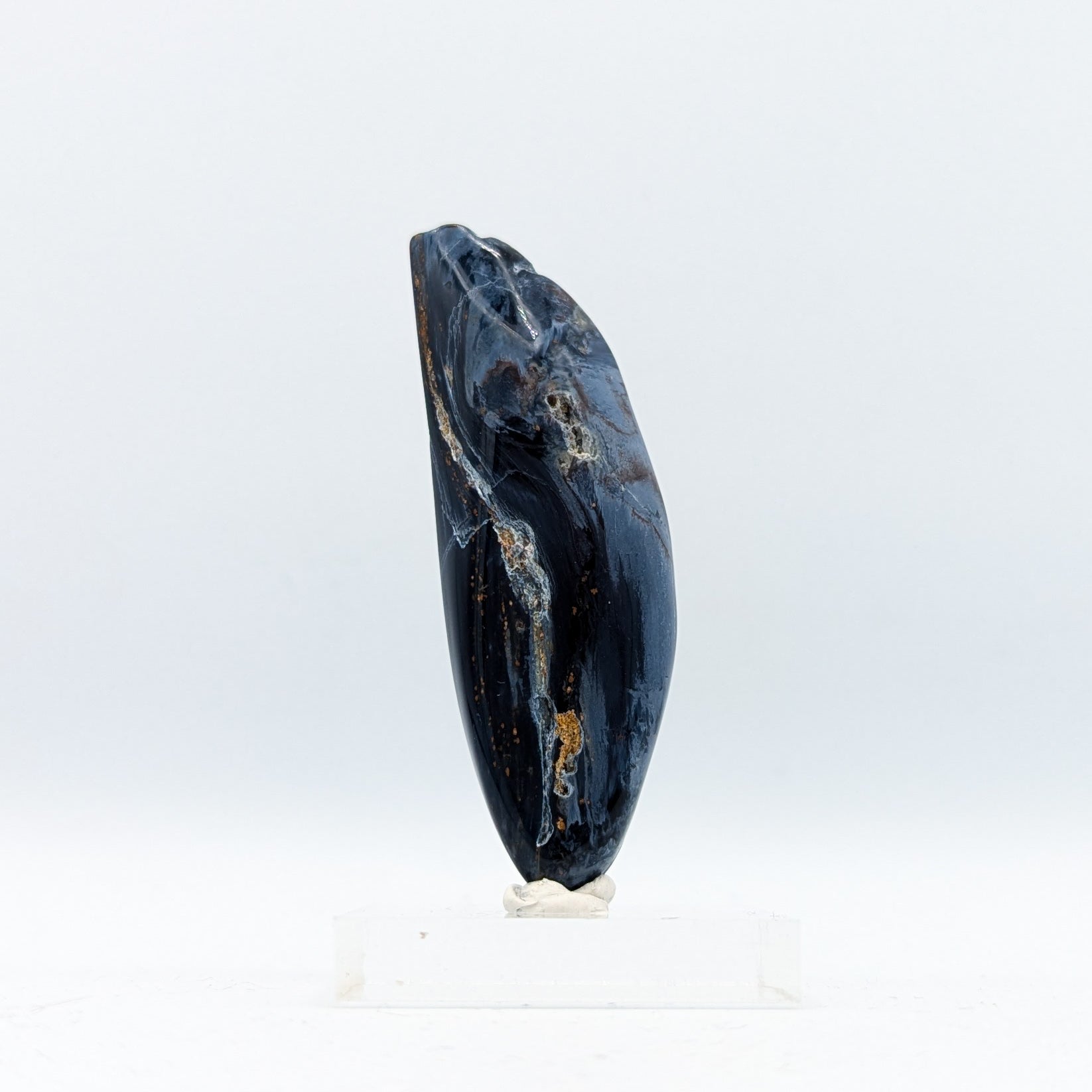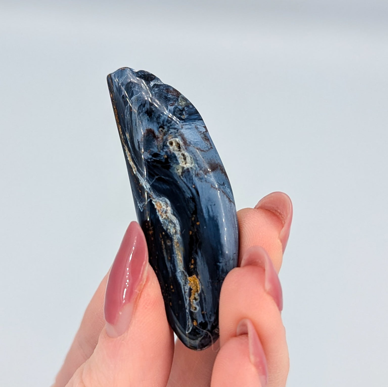 Pietersite creates a channel between the Third Eye and Solar Plexus chakras. It connects our willpower and intuition, and can help bring about decisive actions. With the increased willpower, it gives us the insight to aim for our goals with conviction.