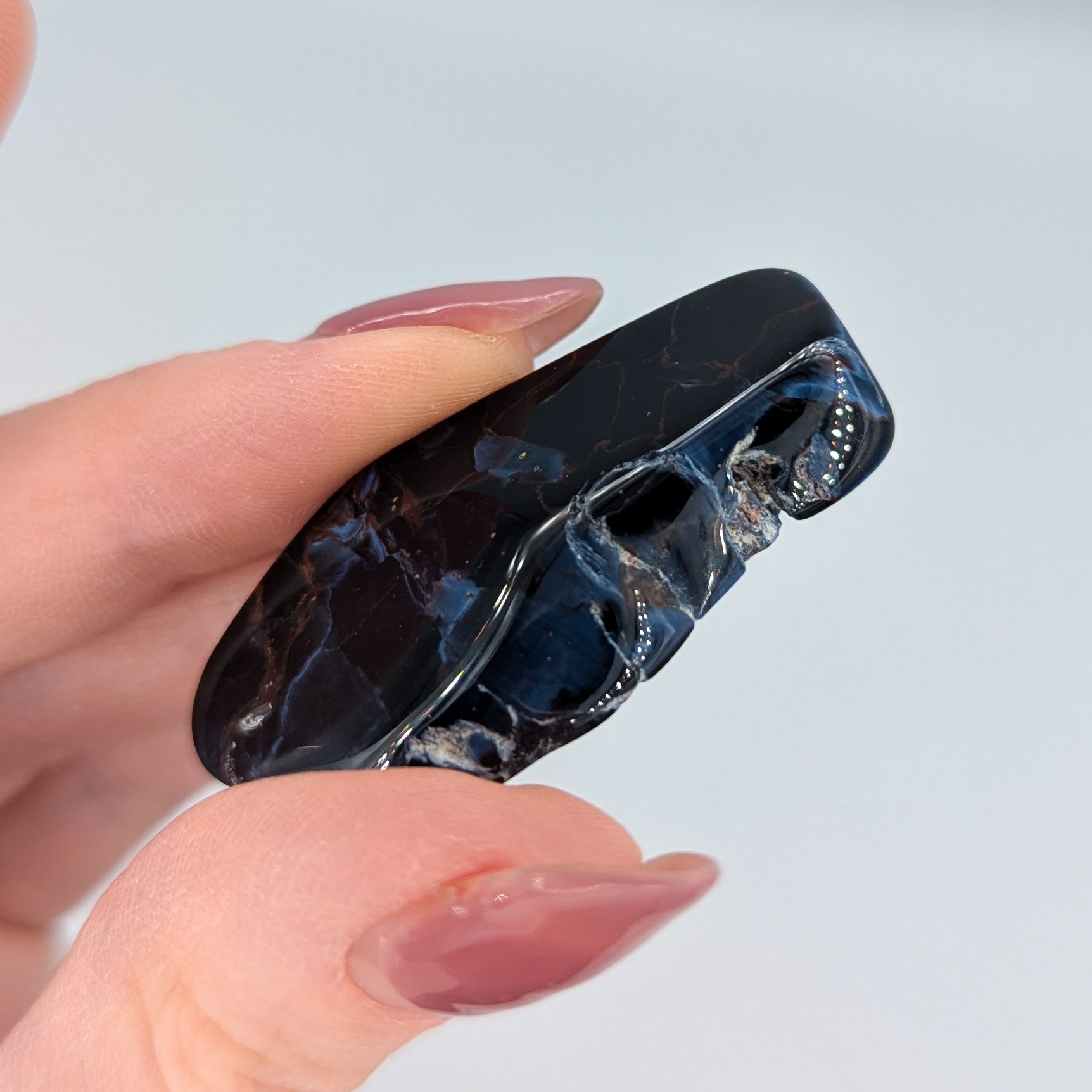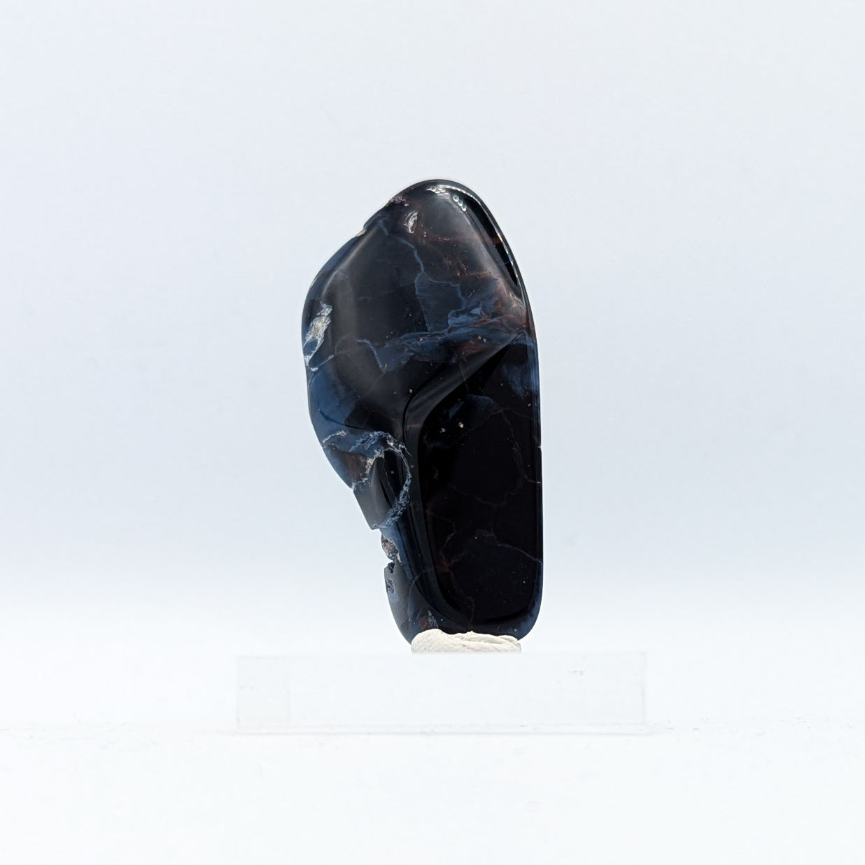 Pietersite creates a channel between the Third Eye and Solar Plexus chakras. It connects our willpower and intuition, and can help bring about decisive actions. With the increased willpower, it gives us the insight to aim for our goals with conviction.