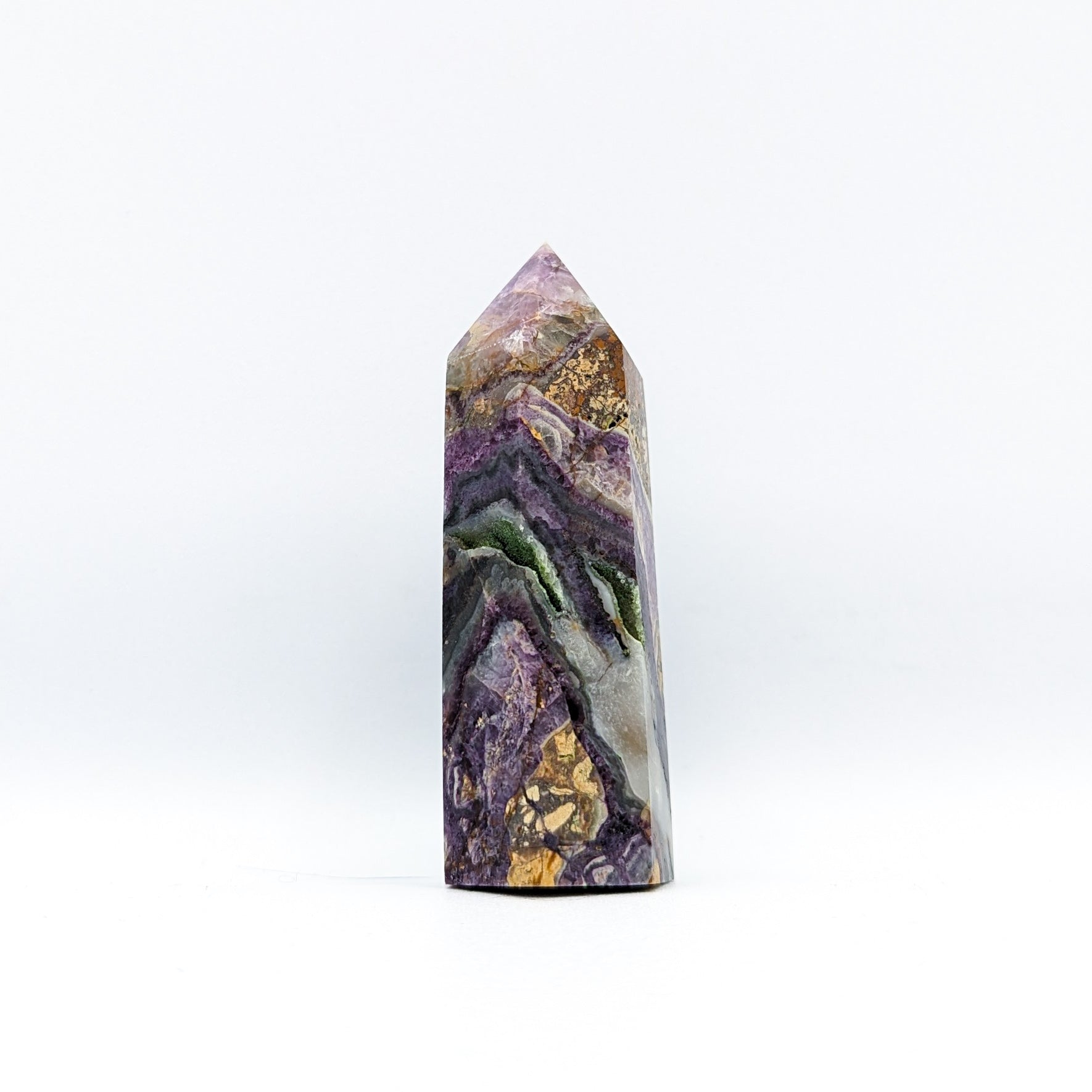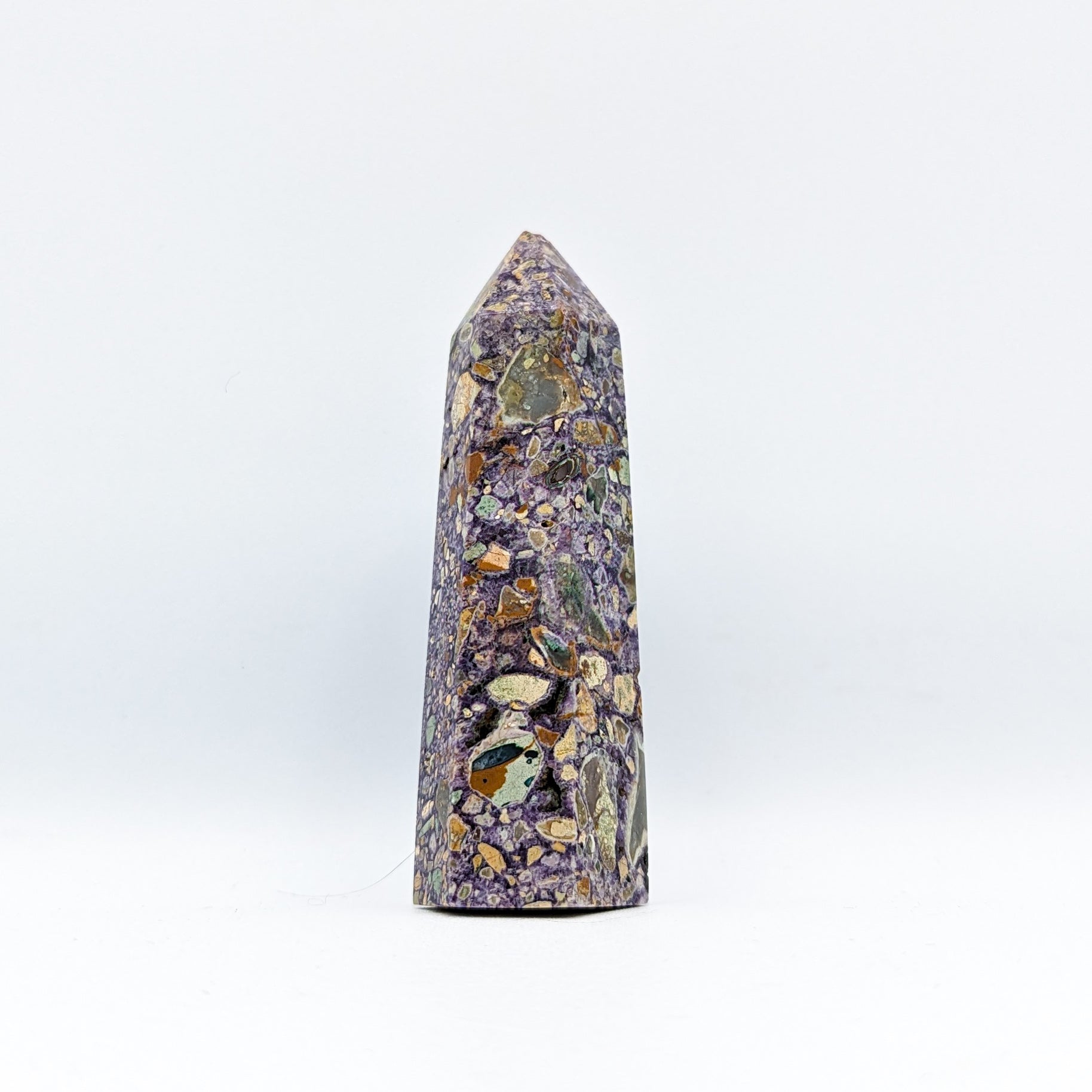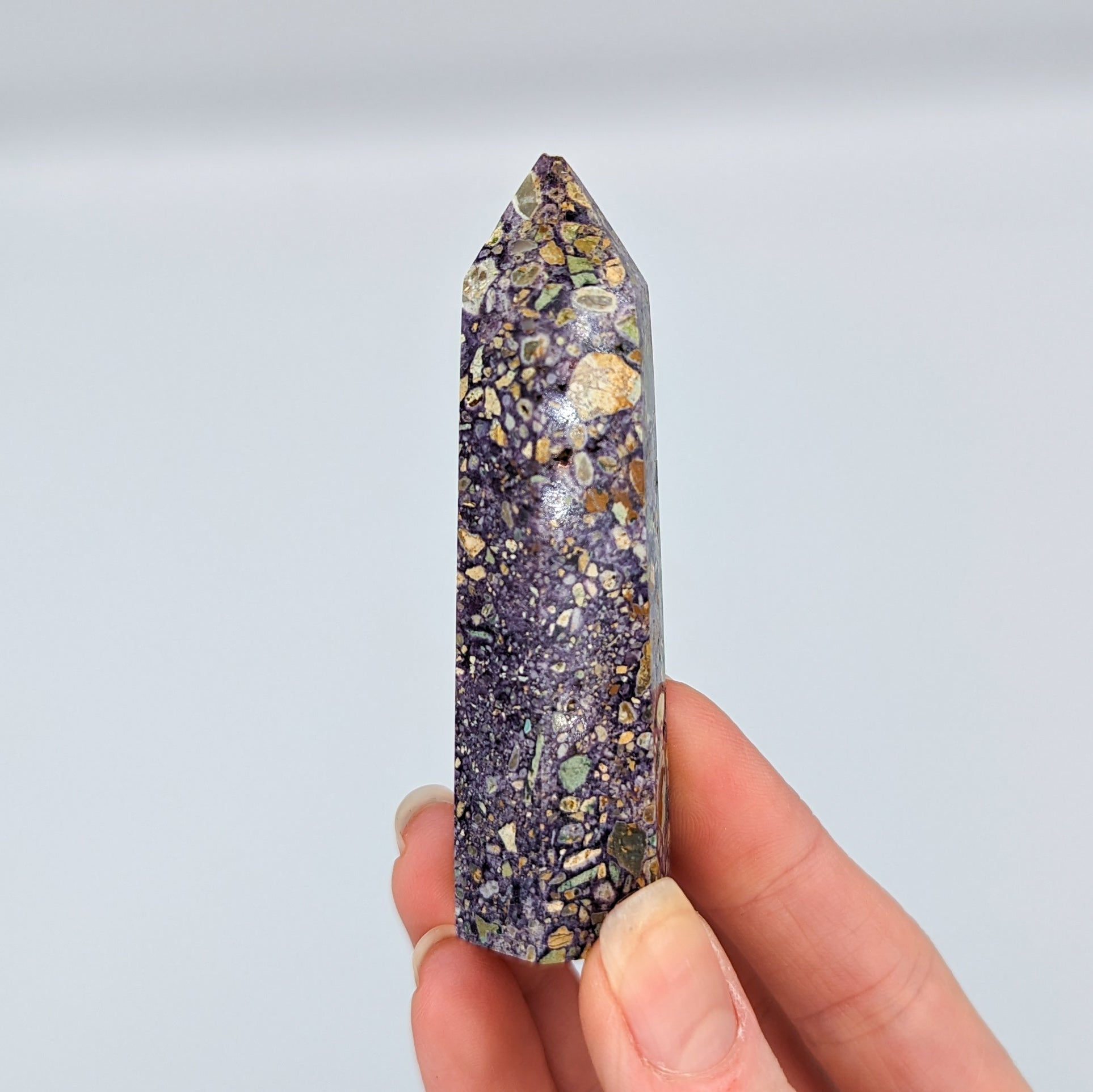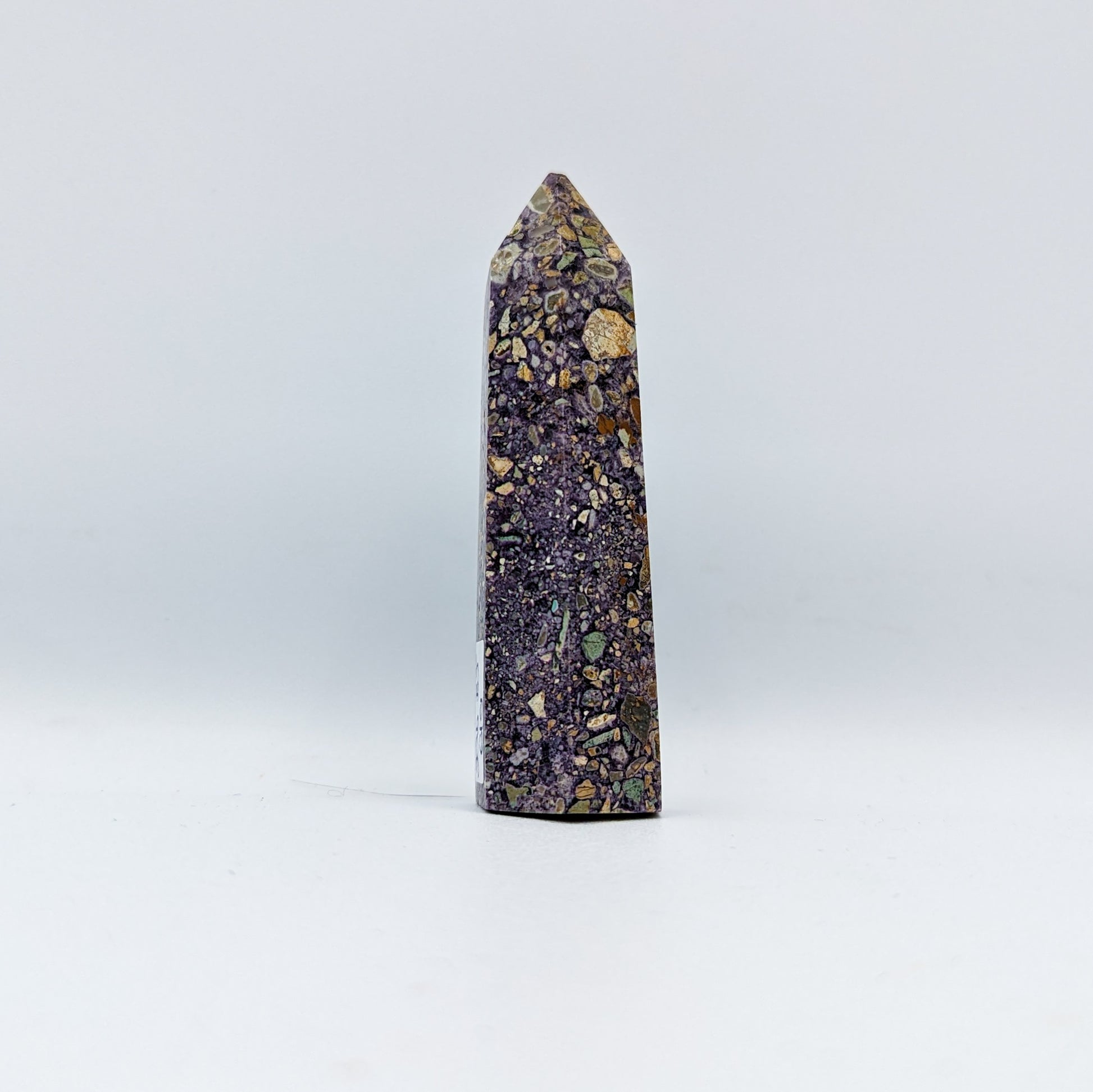 This beautiful crystal is made up of various sharp rocks molded together by the Earth to form a unique mosaic pattern. The colours are determined by minerals and inclusions and can be reds, purples, greens, etc. Each variety of inclusions offers different properties. Purple Brecciated Jasper is a crystal of mental clarity, and focus. It enhances the Crown chakra, bringing uplifting energy to inspire and connect us to our higher self. In opposition, it activates the base chakra (root) to ground us into ourselves and bring creative inspiration. This crystal is perfect for those with creative hobbies, to enhance ideas. Meditate with it to balance the body's energy, and bring a relaxing but uplifting energy.