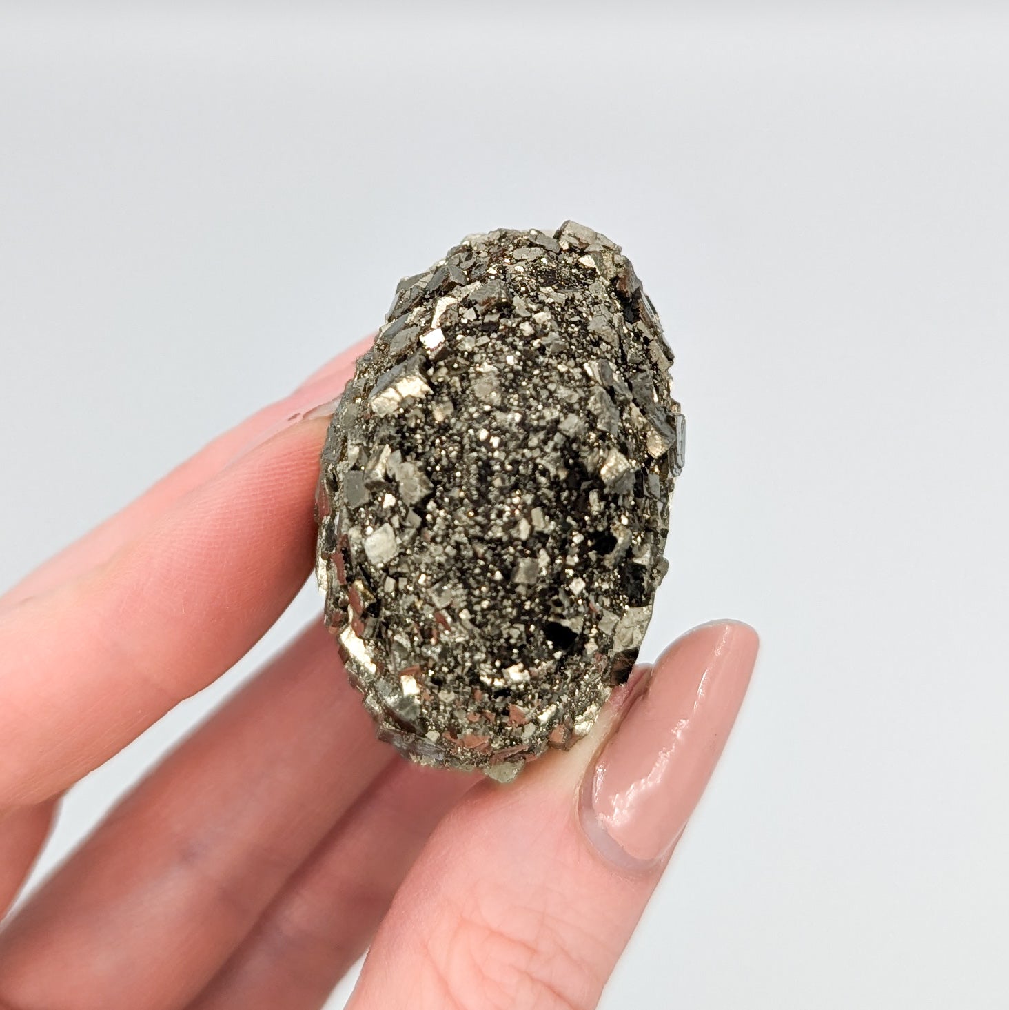 It is a crystal of strength. Getting its name from the Greek word 'Pyr' (translating to 'fire'), this crystal is all about igniting that spark within you. It is a fantastic protecting stone, removing EMF radiation, and other external influences that bring the body down. Once we feel protected on the outside, like a shield in battle, it encourages our confidence to build. Notice when using it, the strength and determination you will find, and your decisiveness will improve too. Influencing the Sacral Chakra, it is going to inspire you once again, and find that lust and drive in life. It is also a great bringer of positive energy.