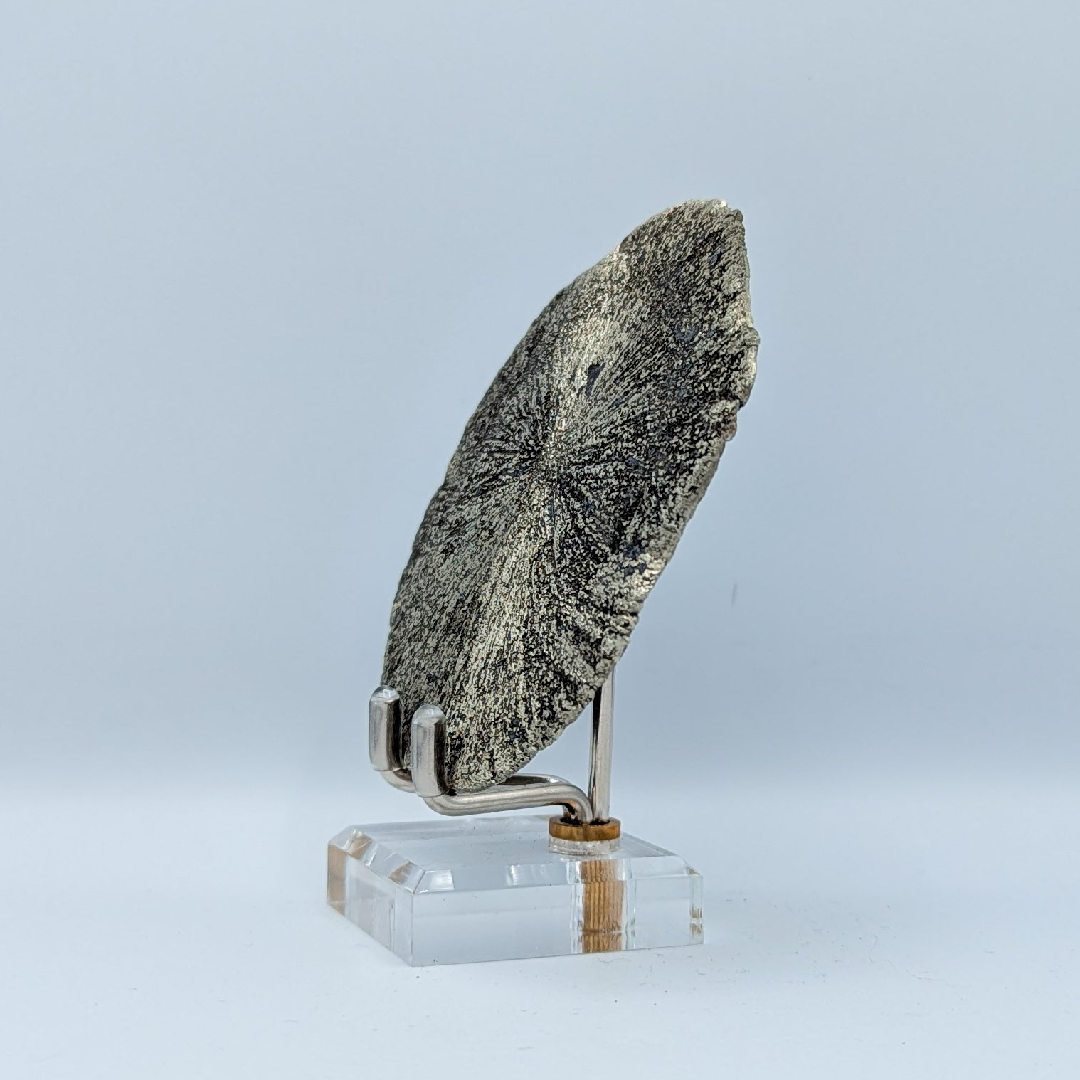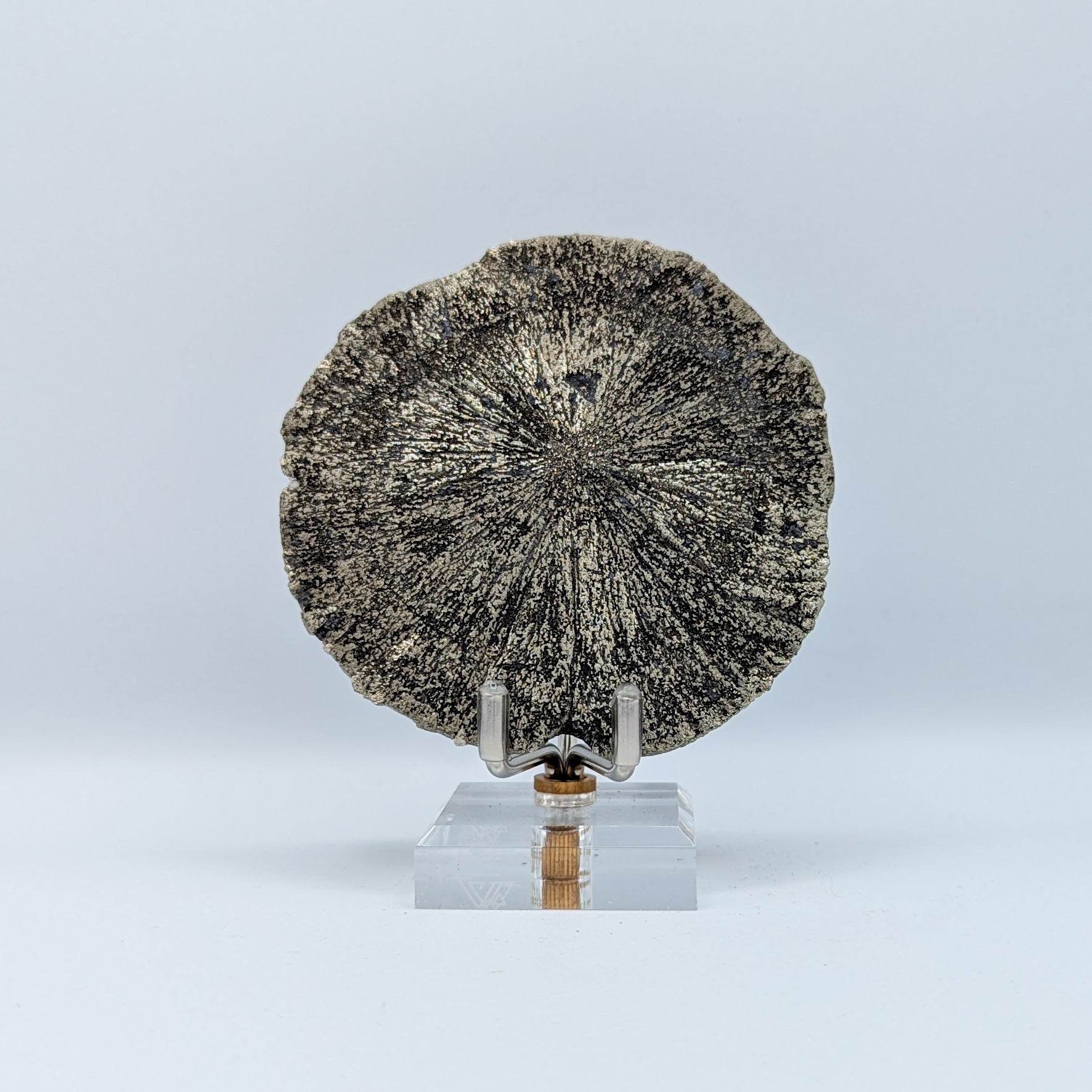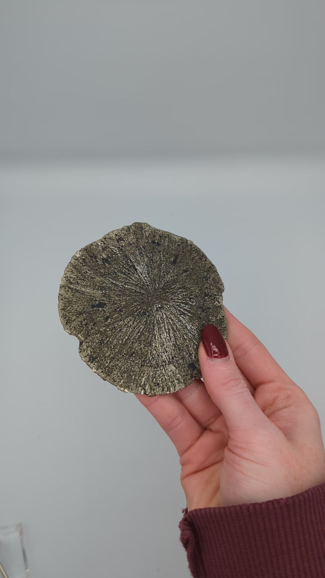 Pyrite Suns are a crystal structure that formed deep underground under enormous pressure about 350 million years ago. It is common to find these mineral disks about 300 feet below ground between seams of coal when coal is mined.