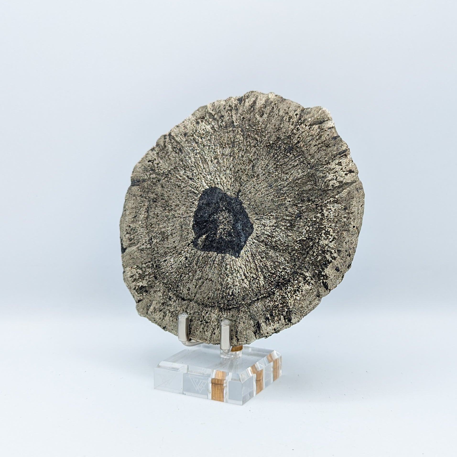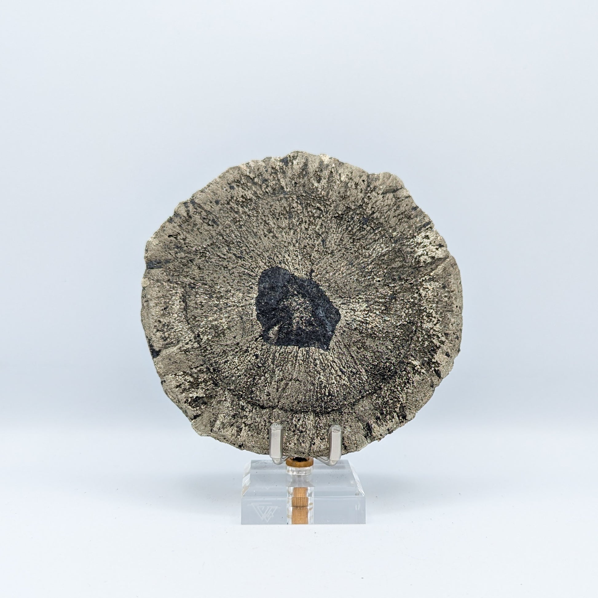 Pyrite Suns are a crystal structure that formed deep underground under enormous pressure about 350 million years ago. It is common to find these mineral disks about 300 feet below ground between seams of coal when coal is mined.