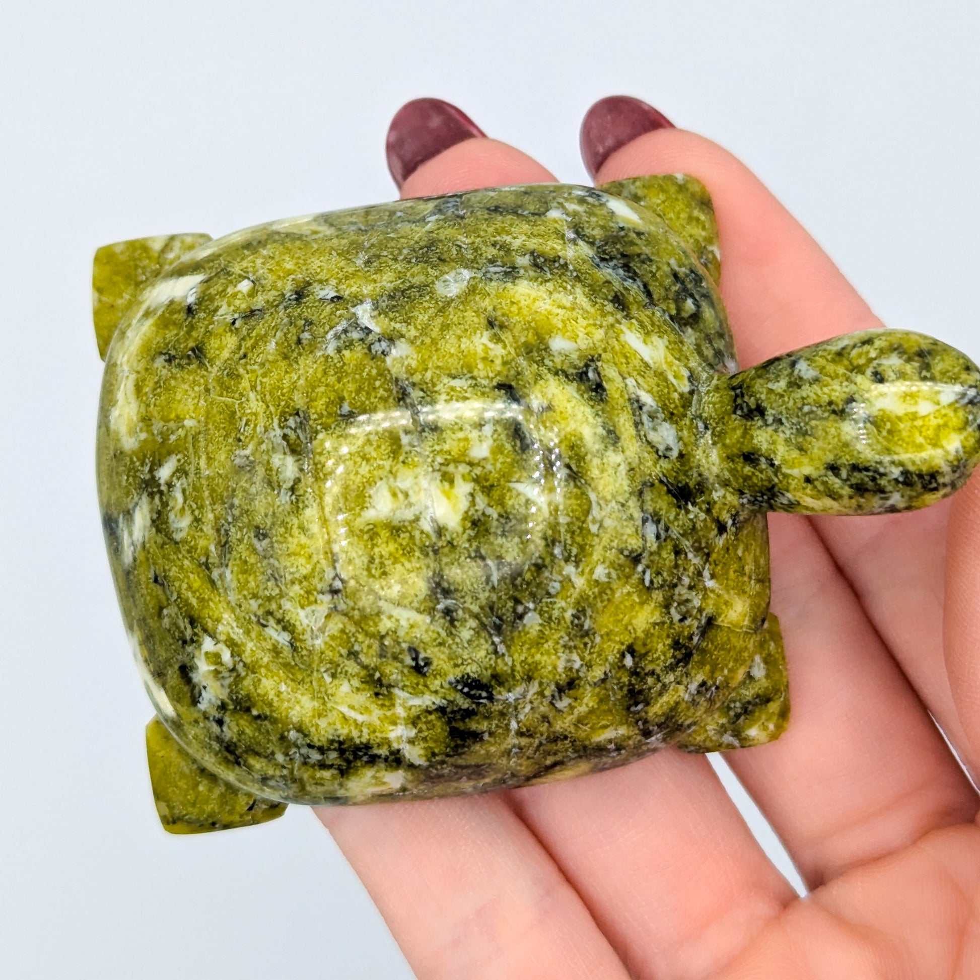 In Feng Shui the Turtle signifies wealth. Place it on the north side of the room of a home or office to offer support for financial issues and stability. The turtle symbolizes longevity, tranquility, and protection, all things that harmonize beautifully with serpentine. When you relate to the turtle, you are said to be an old soul with an open mind, with so much to teach those around you. Offer this piece as a gift to those embarking on a new project, relationship, or experience, to help set things up for the long run.